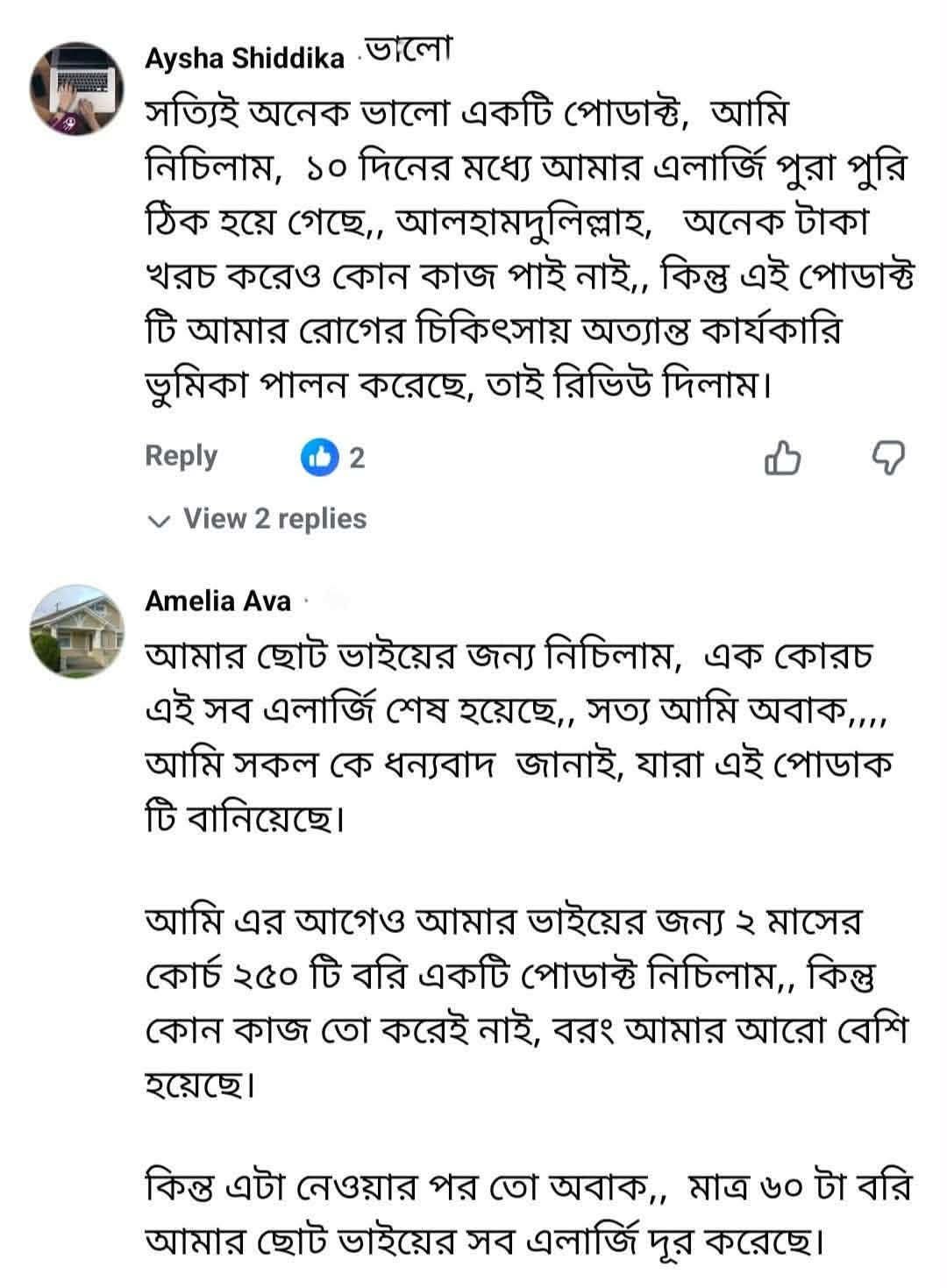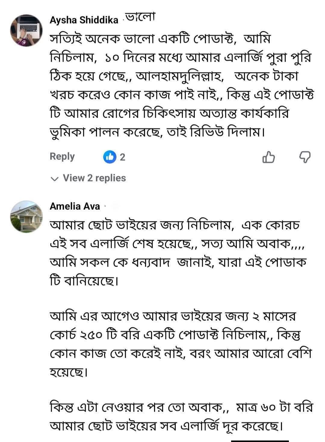 সেবন করে সম্মানিত গ্রাহকের মন্তব্য